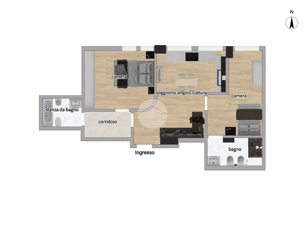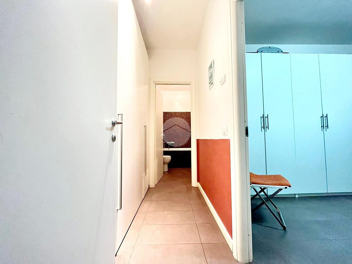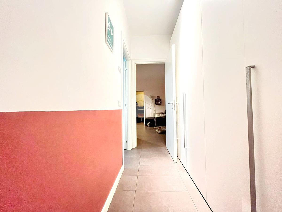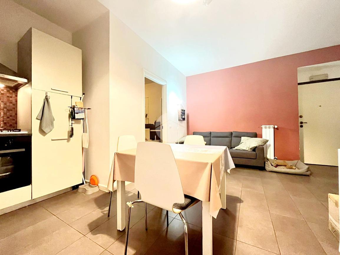L'appartamento ha una concezione moderna degli spazi: entrando, la zona living è aperta tra soggiorno e cucina. Sulla destra troviamo la zona relax con un il divano ed al centro il tavolo. La cucina è su misura, dotata di tutti gli elettrodomestici. Una doppia finestra rende l'ambiente arieggiato.