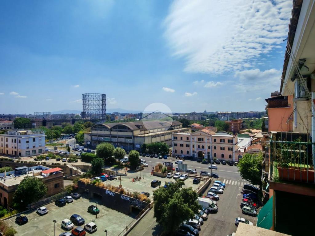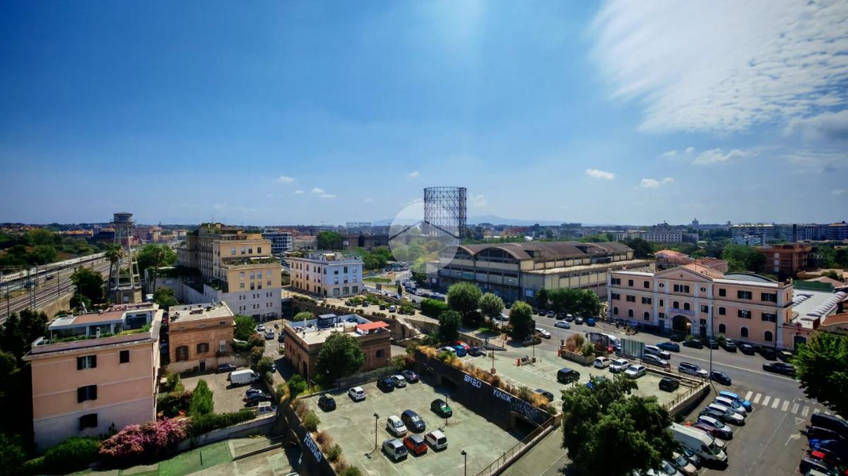 La camera MATRIMONIALE si apre su un balcone panoramico con affaccio libero sul Gazometro e sulla zona di Ostiense uno scorcio suggestivo, soprattutto al tramonto.